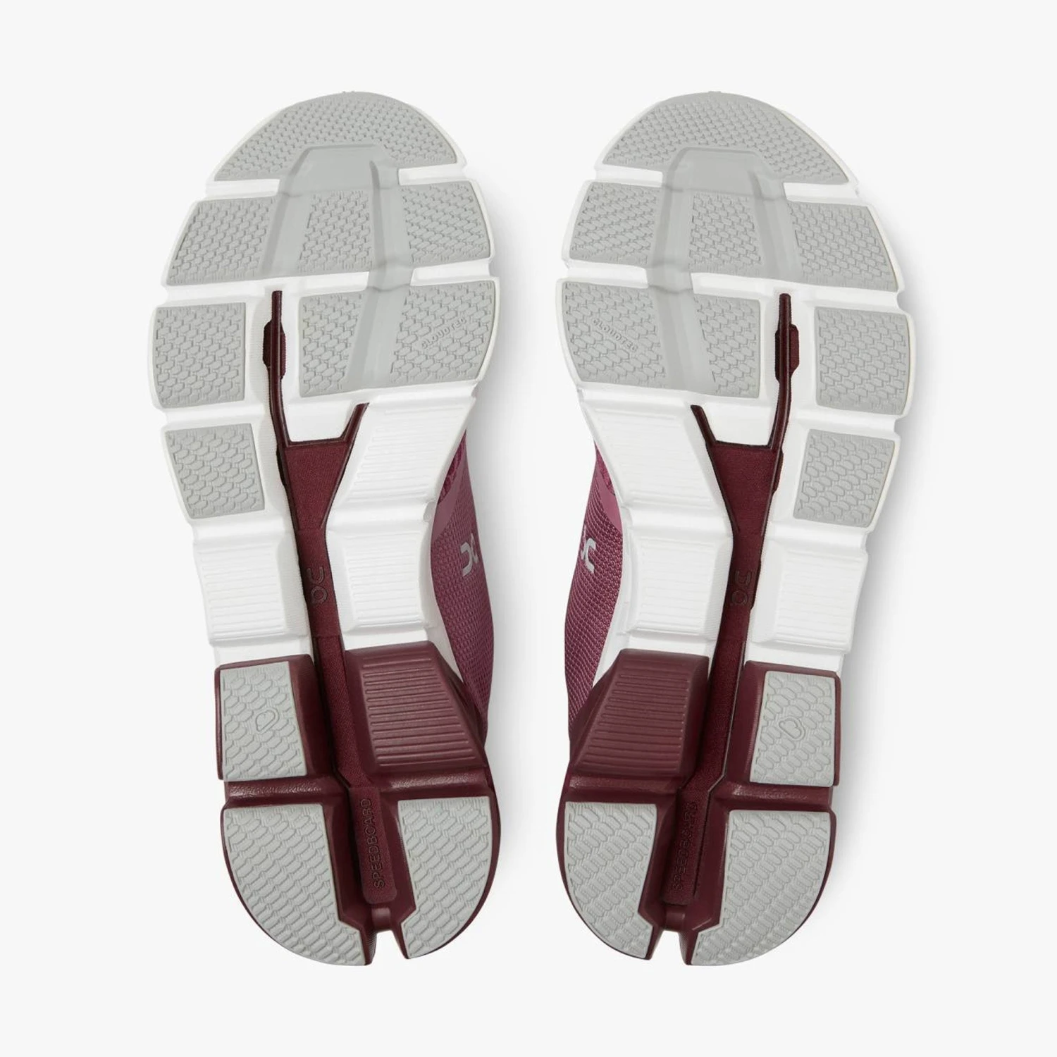 The third-gen Cloudflyer is the first On shoe to feature a forked Cloud outsole. The medial side supports a healthy rolling motion and a stronger push off. The wider surface area in the forefoot disperses the weight of impact to keep you moving in comfort.