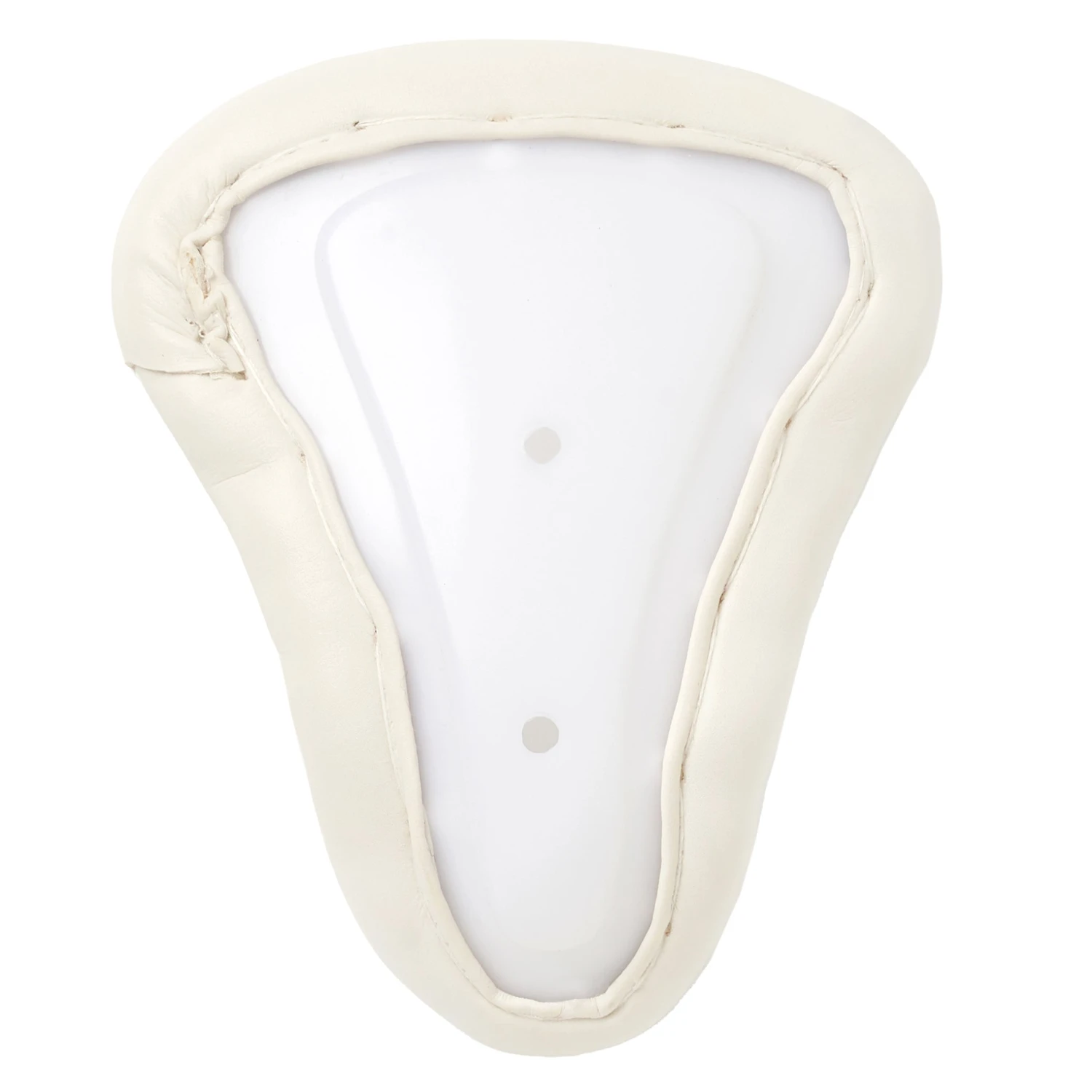 Flat plastic female abdominal guard with soft PU covered edges.